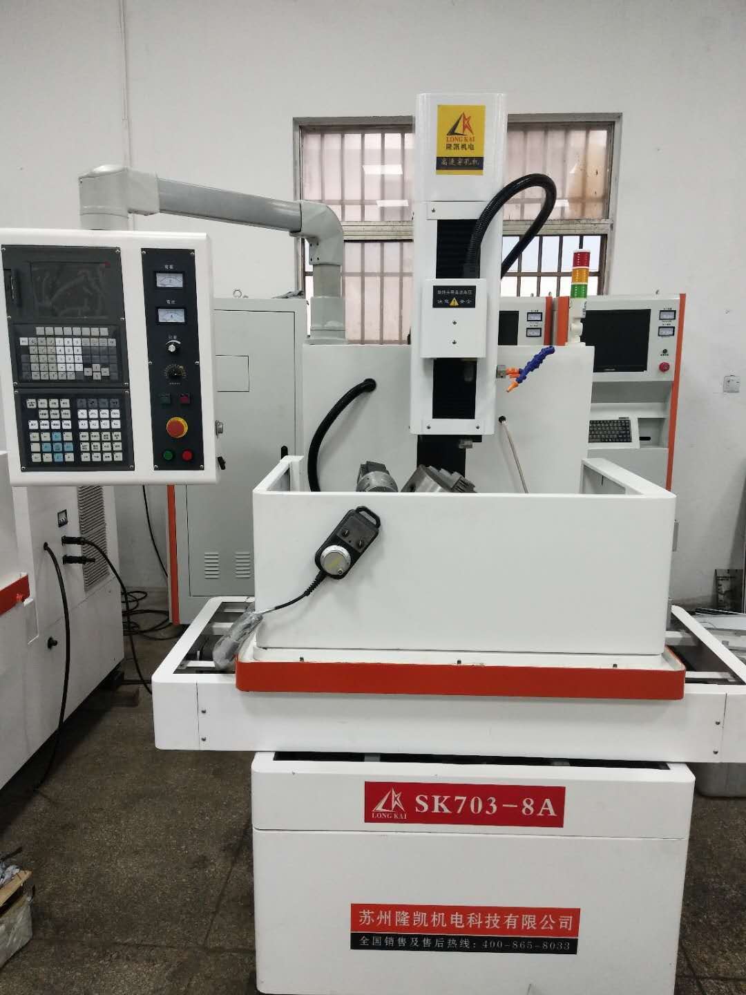 該機(jī)屬電火花小孔高速加工設(shè)備,采用銅管作為電極,由導(dǎo)向器導(dǎo)向,在電極與工件之間施加高效脈沖電源,加工中主軸帶動(dòng)電極在伺服系統(tǒng)控制下作伺服進(jìn)給,在電極與工件之間產(chǎn)生脈沖高頻放電,有控制地蝕除工件。加工中,高壓水質(zhì)工作液從電極的內(nèi)孔中噴出,對(duì)加工區(qū)域?qū)嵤?qiáng)迫排屑冷卻,保證加工的順利進(jìn)行。加工孔徑范圍一般在φ0.2-4㎜,孔徑在1mm左右的深徑比能達(dá)到300:1以上,加工速度一般達(dá)1-40㎜/min,能直接從斜面、曲面穿入,不受材料的硬度及韌性限制,數(shù)控電火花穿孔機(jī)是一款集Z軸定深精確加工、X軸和Y軸伺服檢測(cè)等先進(jìn)功能為一體且有使用方便,操作簡(jiǎn)單,穩(wěn)定可靠,適用范圍廣等特點(diǎn)的產(chǎn)品。可在多種金屬、超硬導(dǎo)電體的切割穿絲孔、慮孔、氣孔、群孔、噴嘴孔等多種傳統(tǒng)加工方法難以加工的深度精密小孔加工。