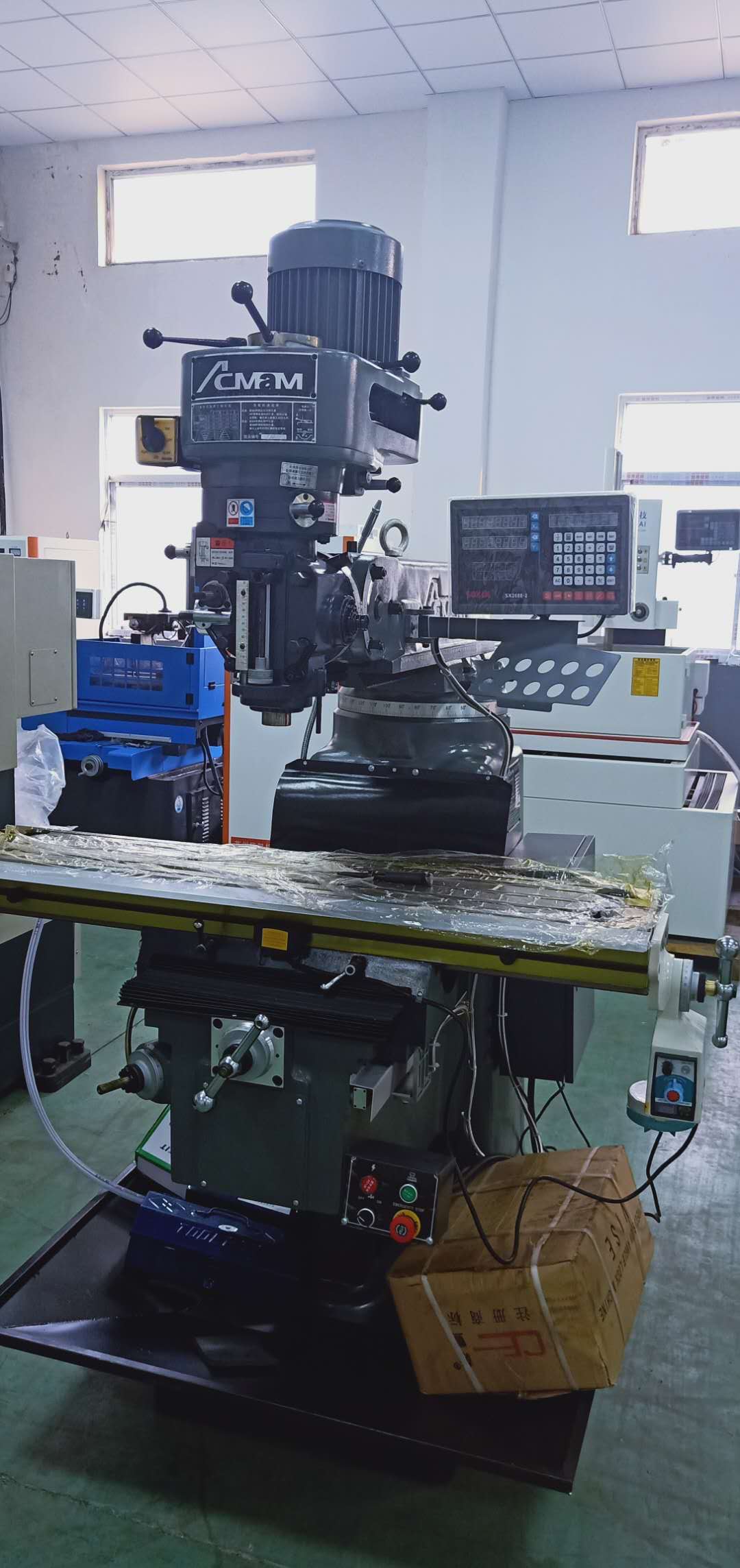 立式炮塔銑床采用主軸垂直布置,工作臺可以上下升降,立式銑床用的銑刀相對靈活一些,適用范圍較廣。可使用立銑刀、機夾刀盤、鉆頭等,可銑鍵槽、銑平面、鏜孔等。主要適用于加工各種零部件的平面、斜面、溝槽、孔等。銑床底座床身一體設計,剛性強;臺灣原裝進口炮塔銑頭,轉數可以達到4千多轉,精度更高;主軸可以自動進給,分別可以左右前后旋轉,加工范圍更廣是你模具精密加工等金屬切削的較好選擇。