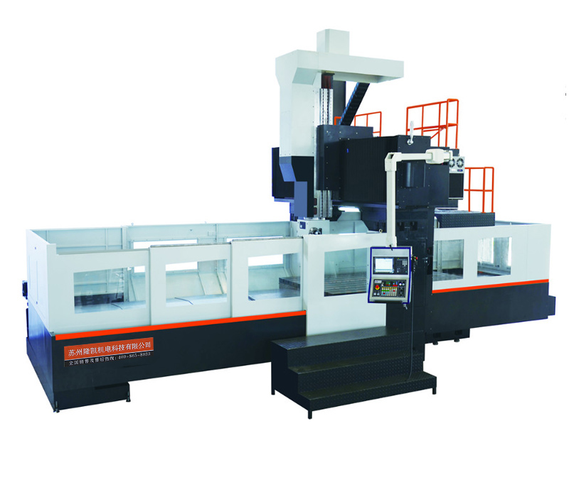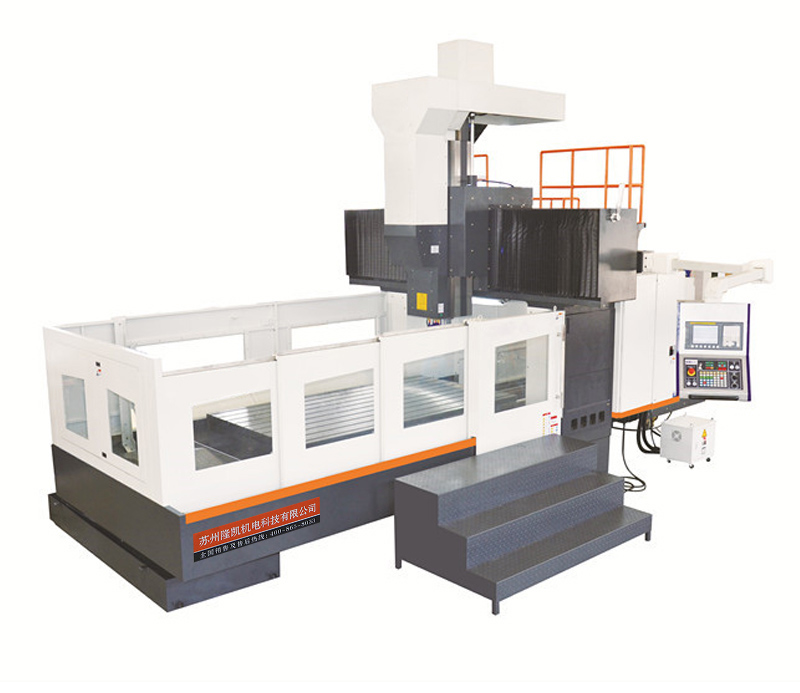 數控龍門加工中心可高效、高精度的完成零件的銑、鉆、鏜、鉸等復雜型面多工序加工,選配直角銑頭、萬能銑頭,可實現零件的一次裝夾,完成零件五面工序的加工,應用于機械制造、模具及復雜曲面的加工。廣泛適用于普通機械、航空、航天、汽車、核工業、能源、模具、機車、重機、工程機械、船舶、機床、電子、印刷、輕紡等制造行業。機床是橫梁固定、工作臺移動、龍門框架式結構,在繼承傳統龍門剛性強、穩定性好等特點的基礎上,引進消化吸收先進的設計理念,利用有限元法進行力學分析,合理布筋,提高機床整體剛性、靜態精度和動態性能,是一種高效率、高精度、高可靠性的先進設備。