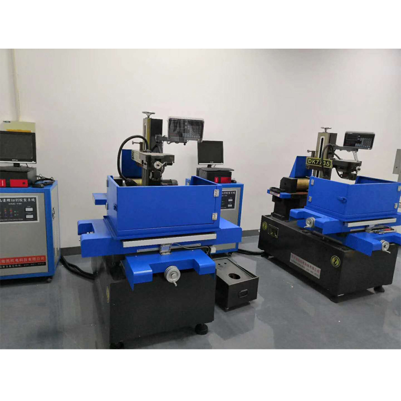 高效率快走絲線切割是集機床電器,高頻電源,伺服控制與圖形編程為一體,實現了高效率,高精度,高光潔度,簡便的加工控制,大幅提高快走絲機床的加工水平。機床換向采用變頻器柔性換向,可以任意調節運絲滾筒速度,從而提高工件光潔度。,高效(切割效率可達每小時7000到8000平方毫米) 是普通機床切割效率的2倍,節能(機床每小時能耗0.85度電)相對普通機床節能50%,環保(機床環保水罩防止工作液外濺,采用高壓過濾水箱工作液可以30個工作日更換一次,大大提高工作時間,及降低排污次數。機床電器部分全部安裝在控制柜內防水處理,供油全部用手動壓油泵集成供油。