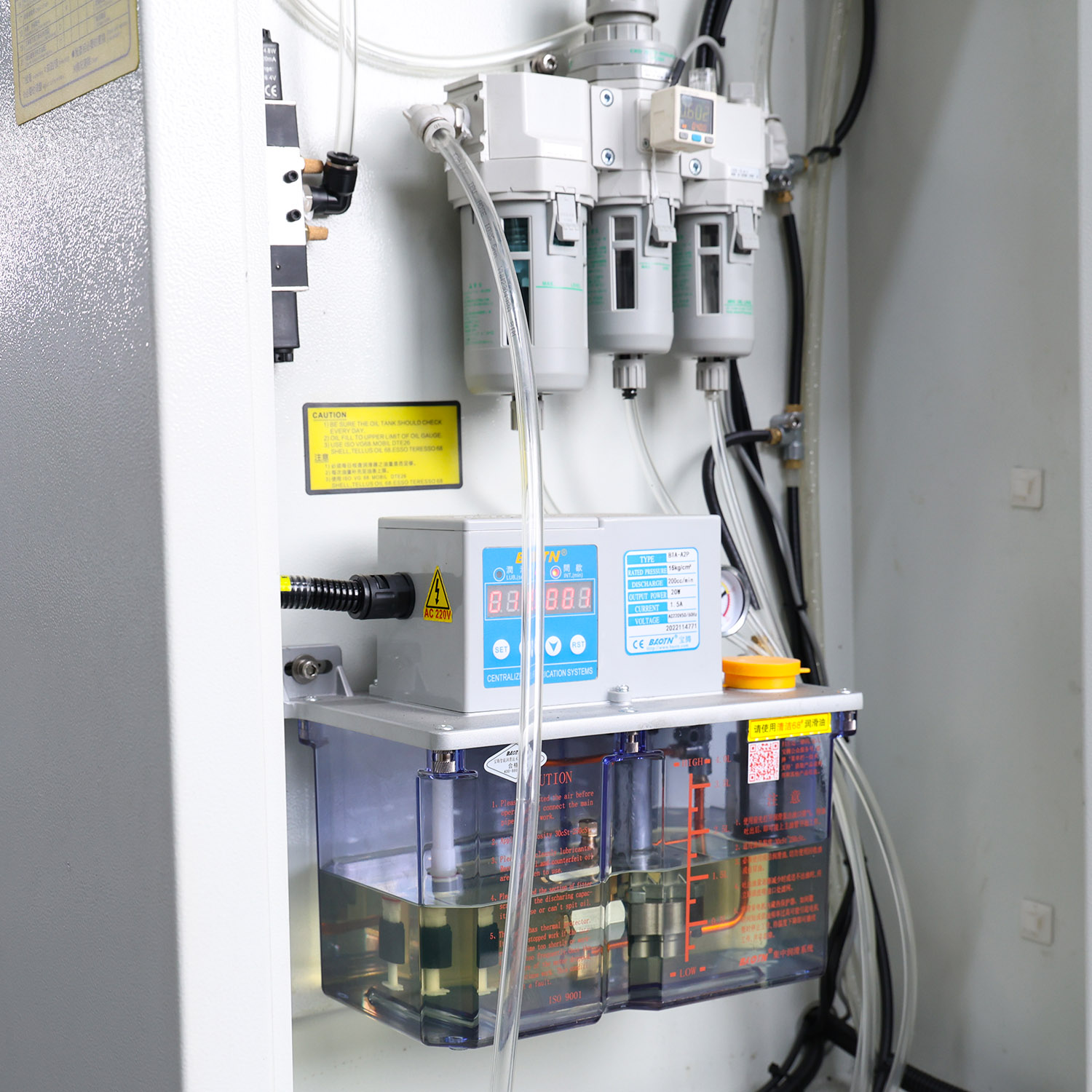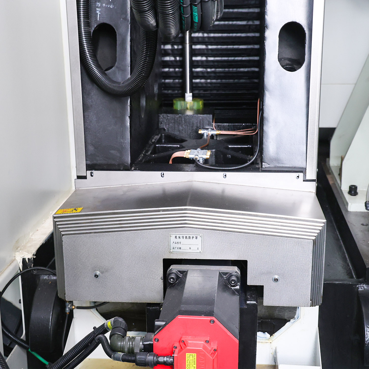 臺灣高速,高精度主軸8000rpm。臺灣斗笠式刀庫,刀庫容量16把。冷卻系統采用大流量,高揚程水泵,保證在高速切削下具有充分的冷卻。VMC-850SL加工中心整機采用封閉防護罩,全封閉電柜,安全、美觀。